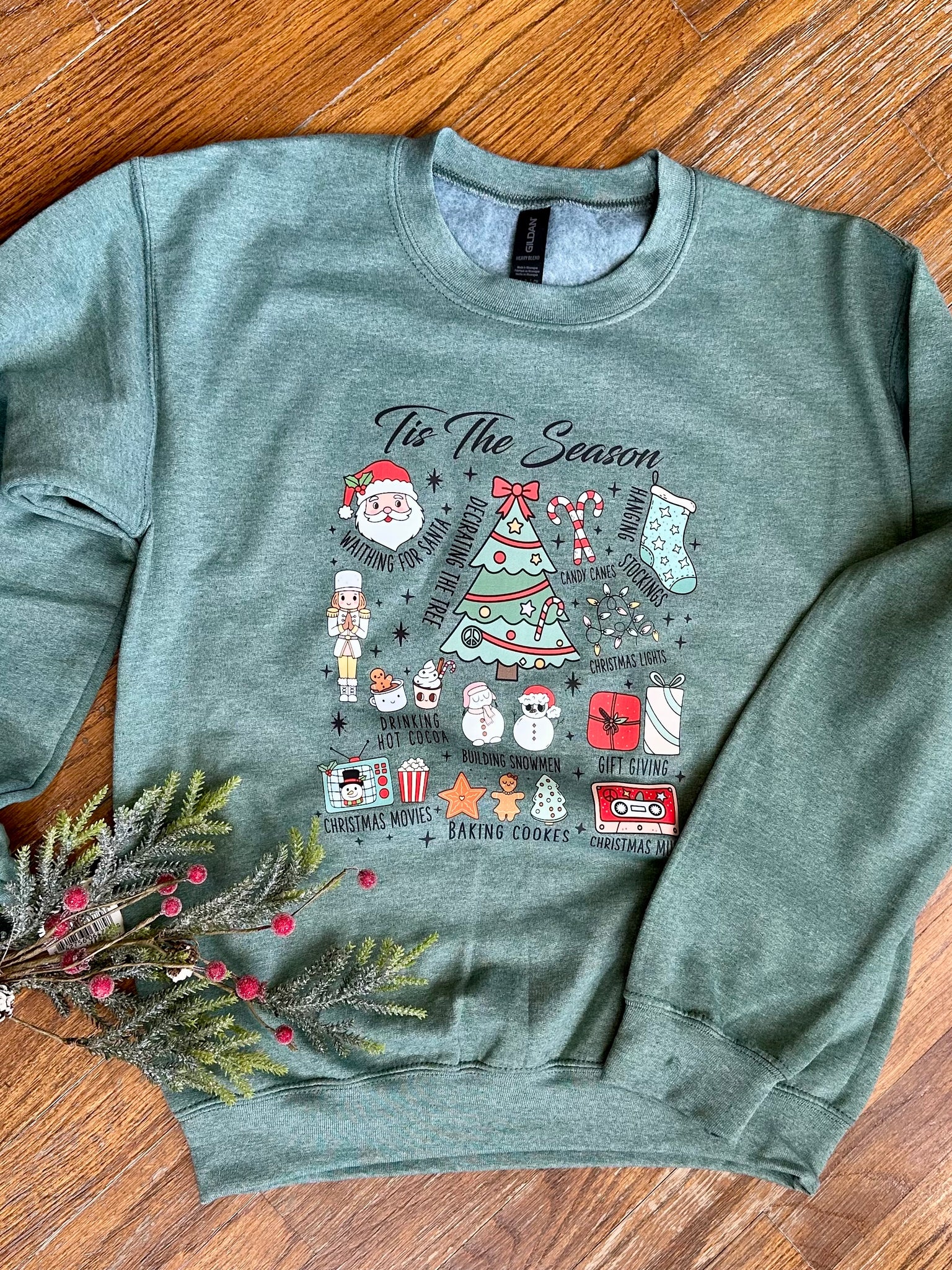 Wrap yourself in cozy comfort with this unisex Holiday Sweatshirt, featuring a charming transfer graphic that brings festive cheer to your wardrobe. Crafted from quality Gildan fabric in a soft heather army green, it's the perfect layering piece for casual celebrations and everyday wear. The relaxed fit flatters all body types, making it an ideal gift or personal favorite for the season ahead.